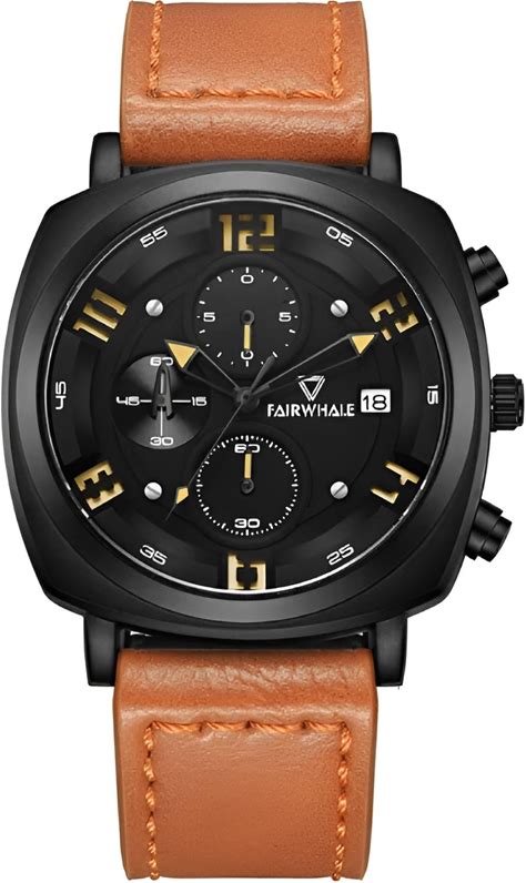Mark Fairwhale FW-5510 AEROCOMMANDER Leather Military Watch, Brown Earth