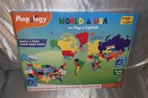 Mapology USA & World Map Puzzle With Flags, Capitals, Stickers Combo Pack NEW