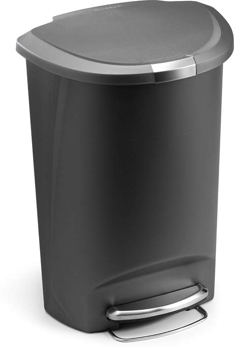 Simplehuman 50 Liter / 13 Gallon Semi-Round Kitchen Step Trash Can With Secure Slide Lock, Grey Plastic