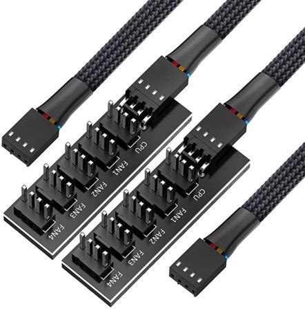 Pwm Fan Hub Splitter, 4 Pin Black Sleeved 5 Way PC CPU Cooling Case Fan Extension Splitter Adapter Cable 40Cm/15.7Inch